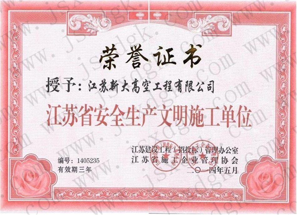 江蘇省高空行業(yè)五十強(qiáng)行業(yè)證書